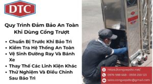 Để đảm bảo an toàn khi dùng cổng trượt, quy trình bảo trì được thực hiện nghiêm ngặt qua các bước sau, dựa trên tiêu chuẩn của DTC: