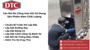 Ghi chú an toàn: Mang găng tay và kính bảo hộ; đảm bảo đường ray chịu tải 500kg để tránh rủi ro cổng inox do lỗi cơ khí.